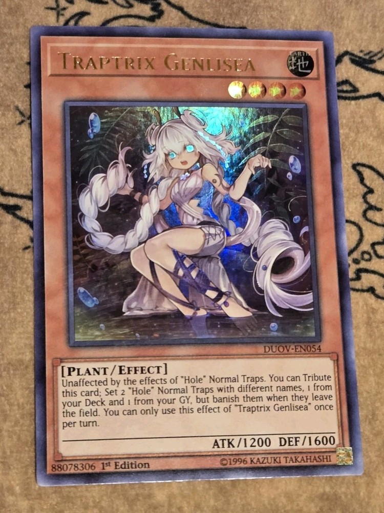 | Card Text | Unaffected by the effects of "Hole" Normal Traps. You can Tribute this card; Set 2 "Hole" Normal Traps with different names, 1 from your Deck and 1 from your GY, but banish them when they leave the field. You can only use this effect of "Traptrix Genlisea" once per turn. |