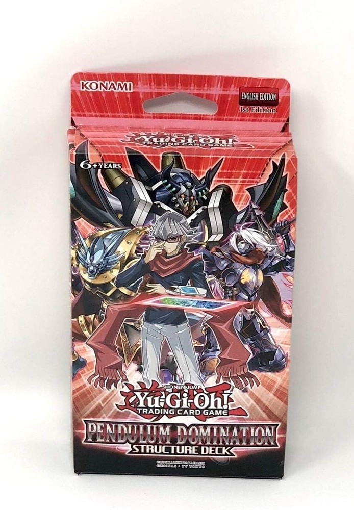 Experience the strategy and excitement of the Yu-Gi-Oh! TCG with the Pendulum Domination Structure Deck. This first edition, factory-sealed deck offers a complete set for players to dive into the engaging world of duel battles and card collecting. With its English language cards, it's perfect for players and collectors in the United States. The Pendulum Domination deck features a variety of cards that enhance strategic play, making it a valuable addition to any Yu-Gi-Oh! TCG collection. Whether you're looking to expand your deck or start a new one, this structure deck provides the tools you need to dominate your opponents.