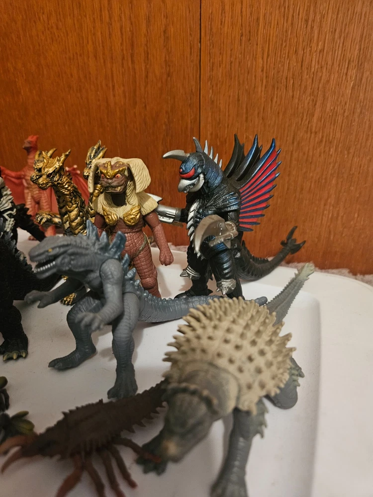 Get ready for an epic battle with this full set of 16 monsters from the Bandai Godzilla Final Wars collection. Join Zilla, Ceaser, and Ebira in their quest to dominate the battlefield. These toys are perfect for fans of the Godzilla franchise and collectors alike. Each monster is highly detailed and comes with multiple points of articulation, allowing for dynamic poses and playability. The set includes everything you need to recreate your favorite scenes from the movie or create your own epic battles. Don't miss out on the chance to add this amazing set to your collection.