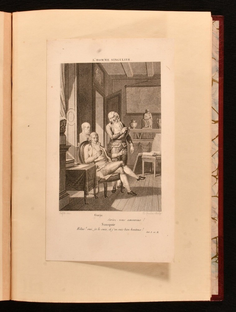 Click here to see our other books! Photo Album Containing Plates Depicting Destouches Operas - [c1811] - : - 10.5" by 8" Unpaginated SUMMARY This unique leather bound photo album contains plates depicting scenes from André Cardinal Destouches operas. Illustrated,Leather Binding Overall Condition: Very Good Indeed This book weighs 0.5 KG when packed UK Postage: £ 3.99 US Postage: £ 15.99 EU Postage : £ 13.99 European Postage: £ 14.99 Asia Postage: £ 18.99 Worldwide Postage: £ 19.99 DESCRIPTION A photo album with eleven plates by Louis Lafitte depicting scenes from André Cardinal Destouches's operas tipped in, along with a portrait of the French composer himself to the front of the album. Undated. Dated from one dated plate. CONDITION In a quarter morocco binding over cloth boards. Externally, generally smart. Lightly rubbed to the boards, with a little rubbing to the joints and extremities. Internally, firmly bound. The pages and the plates are generally bright and clean with some light spotting. Overall Condition: Very Good Indeed GLOSSARY OF TERMS Overall Condition (Dustwrapper condition rating is shown after that for the book itself, where a dustwrapper is present) Fine - Very well preserved copy showing very little wear Very Good Indeed - Only one or two minor faults, really a very attractive copy Very Good - Quite a wide term meaning no major faults but probably several smaller ones often expected given the age of the book, but still a respectable copy Good - Meaning not very good. Some more serious faults as will be described in the condition report under 'condition' Good Only - Meaning one or more faults that could really do with repair Fair - As with good only above but with other faults leaving a compromised copy even after repair Poor - Really bad and possibly seriously incomplete. We only sell books in this condition where their rarity or value makes them attractive none the less. Major defects will be described. GUARANTEE We offer a full money back guarantee on our descriptions. Please ask for details and conditions. We prefer PAYPAL. If you pay via PAYPAL we will post the item off the same or the next working day with the postage you have selected. Please note we cannot accept USD cheques