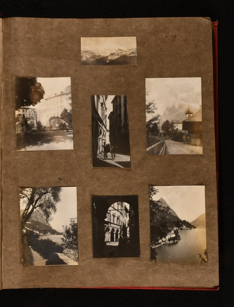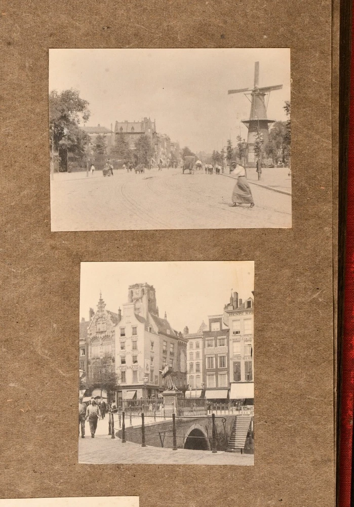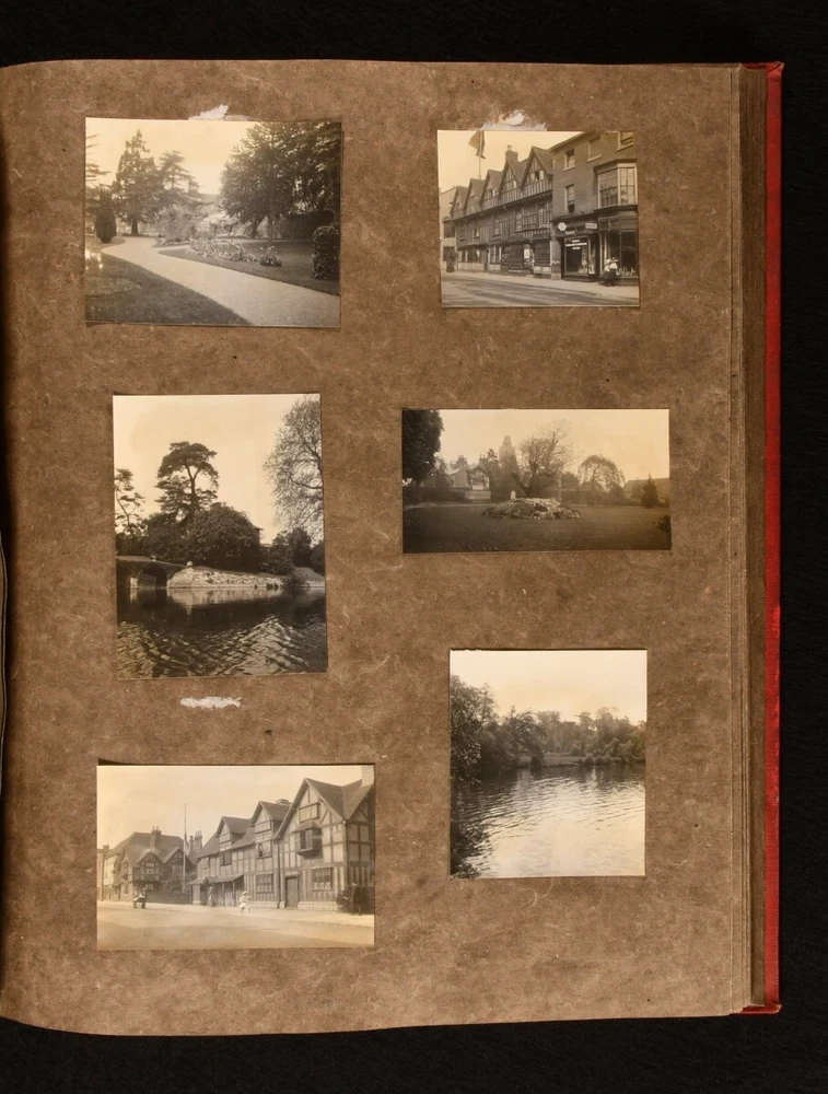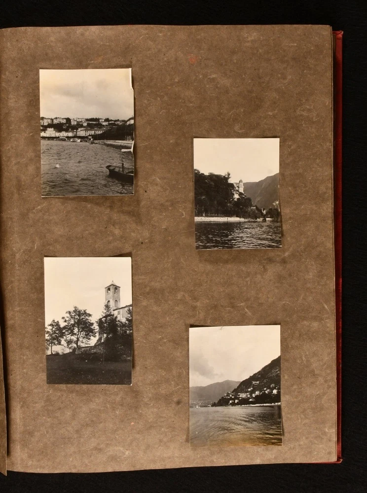 Click here to see our other books! Photograph Album of European Travels Not Stated c1900 Privately printed : Not Stated 14" by 11" Unpaginated SUMMARY An album of photographs from around Europe and Britain in the Edwardian era; offering a nostalgic view into the past. Illustrated,Leather Binding Overall Condition: Very Good This book weighs 1.5 KG when packed UK Postage: £ 3.99 US Postage: £ 19.99 EU Postage : £ 15.99 European Postage: £ 16.99 Asia Postage: £ 21.99 Worldwide Postage: £ 25.99 DESCRIPTION A photograph album in a quarter morocco binding, bound at the workshop for Cripples. A smart photograph album with 115 photographs tipped in. These evocative photographs are unfortunately without annotations but capture a variety of places from around Europe, though principally in Britain, during the Edwardian era. Places depicted include: Italy, in particular Lake Como and Venice, with photographs of Saint Mark's Basilica and Doge's Palace; Rotterdam, with the statue of Erasmus; street and seaside views in Clovelly; The Five Gables and other views in Stratford-upon-Avon; The Old Mill at Guy's Cliffe in Warwick and Warwick Castle; Gloucester Cathedral and Old Parliament House; Raglan Castle; the River Wye; Tintern Abbey and Monnow Bridge gate tower in Monmouth. A number of figures in Edwardian-style dress have also been captured. CONDITION In a quarter morocco binding. Externally smart, though with a little rubbing and faint marks to the spine and boards. Internally, firmly bound. Pages are clean and photographs remain firmly tipped in. Overall Condition: Very Good GLOSSARY OF TERMS Overall Condition (Dustwrapper condition rating is shown after that for the book itself, where a dustwrapper is present) Fine - Very well preserved copy showing very little wear Very Good Indeed - Only one or two minor faults, really a very attractive copy Very Good - Quite a wide term meaning no major faults but probably several smaller ones often expected given the age of the book, but still a respectable copy Good - Meaning not very good. Some more serious faults as will be described in the condition report under 'condition' Good Only - Meaning one or more faults that could really do with repair Fair - As with good only above but with other faults leaving a compromised copy even after repair Poor - Really bad and possibly seriously incomplete. We only sell books in this condition where their rarity or value makes them attractive none the less. Major defects will be described. GUARANTEE We offer a full money back guarantee on our descriptions. Please ask for details and conditions. We prefer PAYPAL. If you pay via PAYPAL we will post the item off the same or the next working day with the postage you have selected. Please note we cannot accept USD cheques