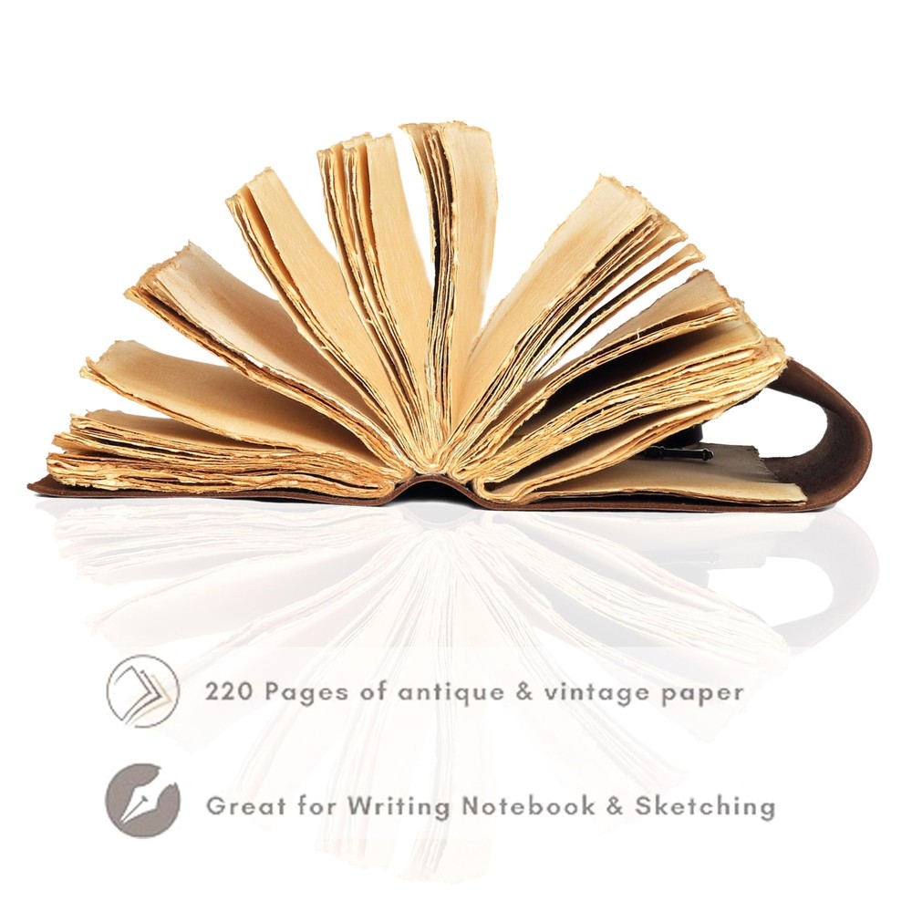 cuero C Compass Vintage Leather Journal - Antique Handmade Leather Bound journal with deckle edge paper Diary - Leather Sketchbook - Drawing Journal Notebook - Great Gift Men And Women (5X7 Inch) Description C CUERO JOURNAL MADE WITH 100 % leather its have guaranteed about quality satisfaction paper is super classy and deckle lovely quality ✔️ PERFECT LEATHER NOTEBOOK HANDCRAFT JOURNAL - Made from 100% Buffalo Leather with Antique Deckle Edge Paper. 240 PAGES This Book Is Hand Crafted by Artisans Working with Leather for Decades. The Color of The Journal Is Very Unique Vintage Brown. ✔️ Use Any Kind Of Pen - Write/sketch/doodle on your classy journal notebook with a Fountain Pen CalligraphyPen, Ball Pen, Brush Pen, Acrylic Colours, Watercolor. IDEAL USE AND PERFECT GIFT – Perfect Use for Business Executive, Poetry Work, Journalists, Craftsman, Writer. A Lovely Treat for Your Loved Ones for An Anniversary, Birthday or Graduation Present, Or for Someone Starting A New Adventure and A Perfect Gift for Those Who Love Vintage One. ✔️ Dimension – (7” X 5” X 2”) With Uncut Deckle Edge Paper, Easily Handle Notebook, You Can Fit with Minimum Space, Easily Handle in Long Journey. Once You Have Used It You Will Feel Like You Have the Best Journal in the World. ✔️ Hand Work Binding AND KEY BOOKMARK – Binding Is Made by Hand Stitching Which Having Enough Strength That the Paper Never Comes Out. The Key Is Very Antique Can Be Used as Bookmark. The Leather Strap Wrap Around the Journal Is Complete Solution for Paper Safety and Open-Close the Journal. The Journal Made by High Quality Buffalo Leather and Paper Have Been Used Is Vintage Historical Paper Which Is Very Durable. Any Quality Issue Let Me us we will replace it without quetion and its 100 % leather and paper made from waste material we never use tree for paper you will love it this Vintage Look Leather Journal With Compass And Quality Locking System Features: NOTE- COLOR CAN VARY PERFECT LEATHER NOTEBOOK HANDCRAFT JOURNAL - Made from 100% Buffalo Leather with Antique Deckle Edge Paper. 240 PAGES This Book Is Hand Crafted by Artisans Working with Leather for Decades. The Color of The Journal Is Very Unique Vintage Brown. USE ANY KIND OF PEN - Write/sketch/doodle on your classy journal notebook with a Fountain Pen CalligraphyPen, Ball Pen, Brush Pen, Acrylic Colours, Watercolor. IDEAL USE AND PERFECT GIFT Perfect Use for Business Executive, Poetry Work, Journalists, Craftsman, Writer. A Lovely Treat for Your Loved Ones for An Anniversary, Birthday or Graduation Present, Or for Someone Starting A New Adventure and A Perfect Gift for Those Who Love Vintage One. DIMENSIONS - (7 X 5 X 2) With Uncut Deckle Edge Paper, Easily Handle Notebook, You Can Fit with Minimum Space, Easily Handle in Long Journey. Once You Have Used It You Will Feel Like You Have the Best Journal in the World HAND WORK BINDING AND KEY BOOKMARK Binding Is Made by Hand Stitching Which Having Enough Strength That the Paper Never Comes Out. The Key Is Very Antique Can Be Used as Bookmark. The Leather Strap Wrap Around the Journal Is Complete Solution for Paper Safety and Open-Close the Journal. The Journal Made by High Quality Buffalo Leather and Paper Have Been Used Is Vintage Historical Paper Which Is Very Durable. Any Quality Issue Let Me us we will replace it without quetion and its 100 % leather and paper made from waste material we never use tree for paper you will love it this Product Details: Brand: cuero Color: Vintage Brown Theme: Book Sheet Size: 3 x 5 Pages: 240 Pages Cover Material: Leather Style: Vintage, Retro Ruling Type: Plain Special Feature: Lock Product Dimensions: 7"L x 5"W x 2"Th Manufacturer: C CUERO Brand: cuero Item Weight: 14.9 ounces Product Dimensions: 7 x 5 x 1 inches Item model number: var-sun35 Color: Vintage Brown Cover Material: Leather Number of Items: 1 Size: 5X7 Inch Ruling: Plain Sheet Size: 3 x 5 Manufacturer Part Number: var-sun35 Date First Available: November 23, 2021 Handling We will ship all orders within 3 business day of payment. Delivery We Do Not Ship Outside of the Continental US. Return Policy All items qualify for returns within 30 days of receipt. Buyer is responsible for return shipping on any item that is not damaged. Feedback We take our reputation seriously, we buy and sell online, so we understand the value of trust. If you are unsatisfied with your order, please contact us and we will work with you to resolve it to your satisfaction.