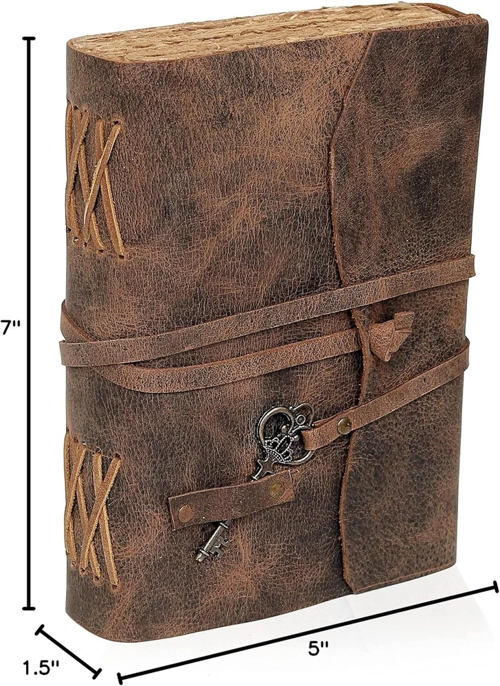 PERFECT HANDCRAFT JOURNAL - Made from 100% Buffalo Leather with Antique Deckle Edge Paper. This Book Is Hand Crafted by Artisans Working with Leather for Decades. The Color of The Journal Is Very Unique Vintage Brown. USE ANY KIND OF PEN - Write/sketch/doodle on your journal notebook with a Fountain Pen CalligraphyPen, Ball Pen, Brush Pen, Acrylic Colours, Watercolor. IDEAL USE AND PERFECT GIFT – Perfect Use for Business Executive, Poetry Work, Journalists, Craftsman, Writer. A Lovely Treat for Your Loved Ones for An Anniversary, Birthday or Graduation Present, Or for Someone Starting A New Adventure and A Perfect Gift for Those Who Love Vintage One. DIMESNIONS – (7” X 5” X 1.5”) With Uncut Deckle Edge Paper, Easily Handle Notebook, You Can Fit with Minimum Space, Easily Handle in Long Journey. Once You Have Used It You Will Feel Like You Have the Best Journal in the World. BINDING AND KEY BOOKMARK – Binding Is Made by Hand Stitching Which Having Enough Strength That the Paper Never Comes Out. The Key Is Very Antique Can Be Used as Bookmark. The Leather Strap Wrap Around the Journal Is Complete Solution for Paper Safety and Open-Close the Journal. The Journal Made by High Quality Buffalo Leather and Paper Have Been Used Is Vintage Historical Paper Which Is Very Durable. OUR GUARANTEE - If for any reason you don’t love the Wanderings vintage notebooks please let us know and we’ll send you a refund - no questions asked. It is as simple as that!