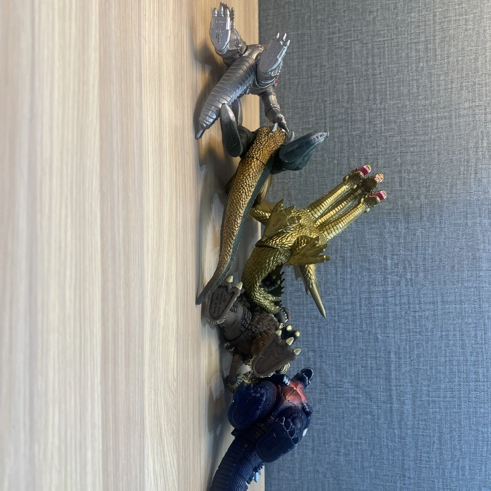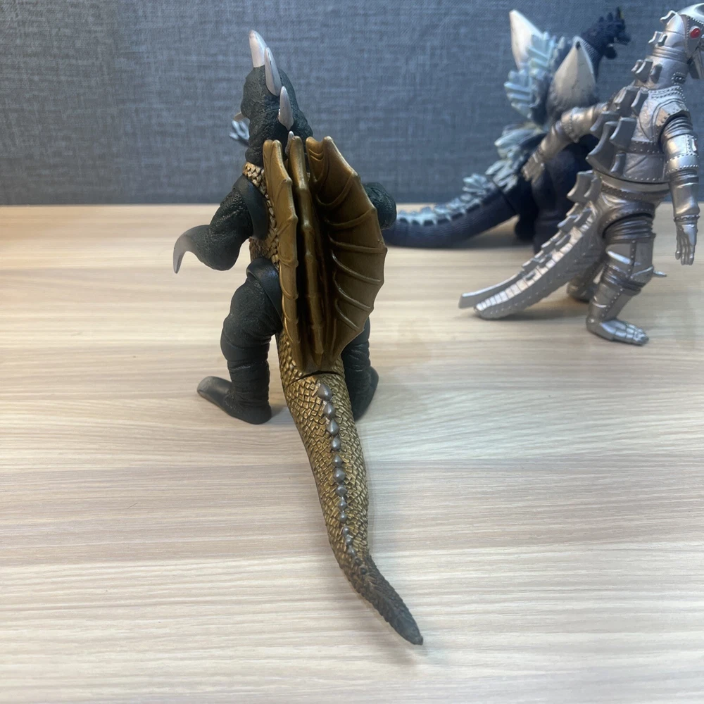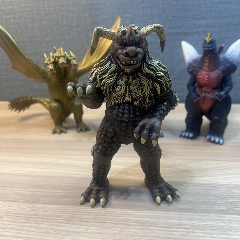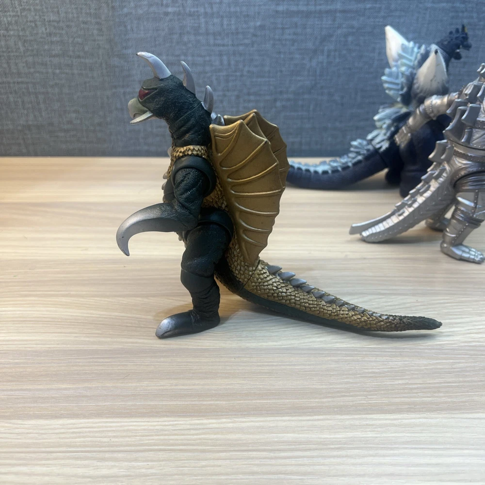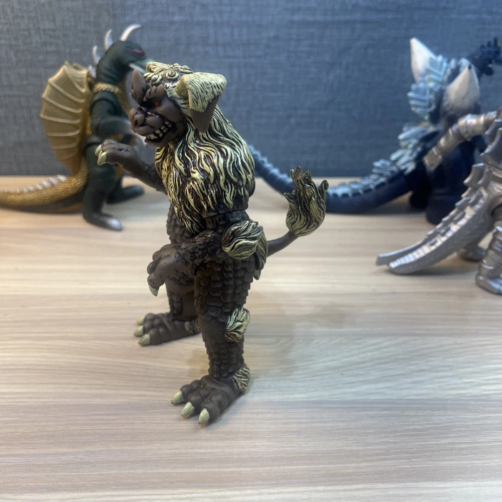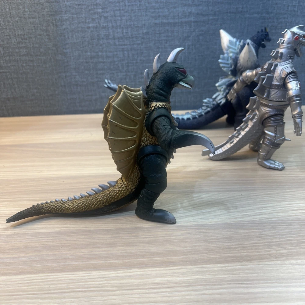 This product is a lot of 5 Godzilla figures featuring Mechagodzilla, King Caesar (Shisa), King Ghidorah, Space Godzilla, and Gigan. The figures are made by Bandai and are part of the Godzilla theme. Included in lot Mechagodzilla Space Godzilla Gigan King Ghidora King Shisa