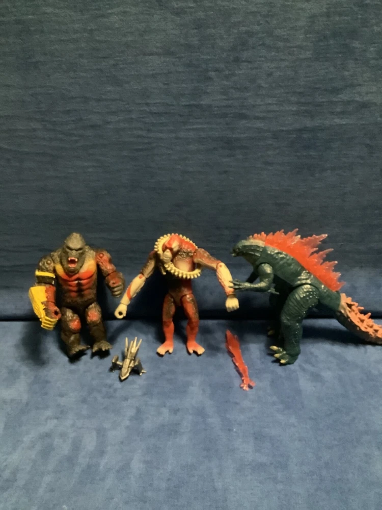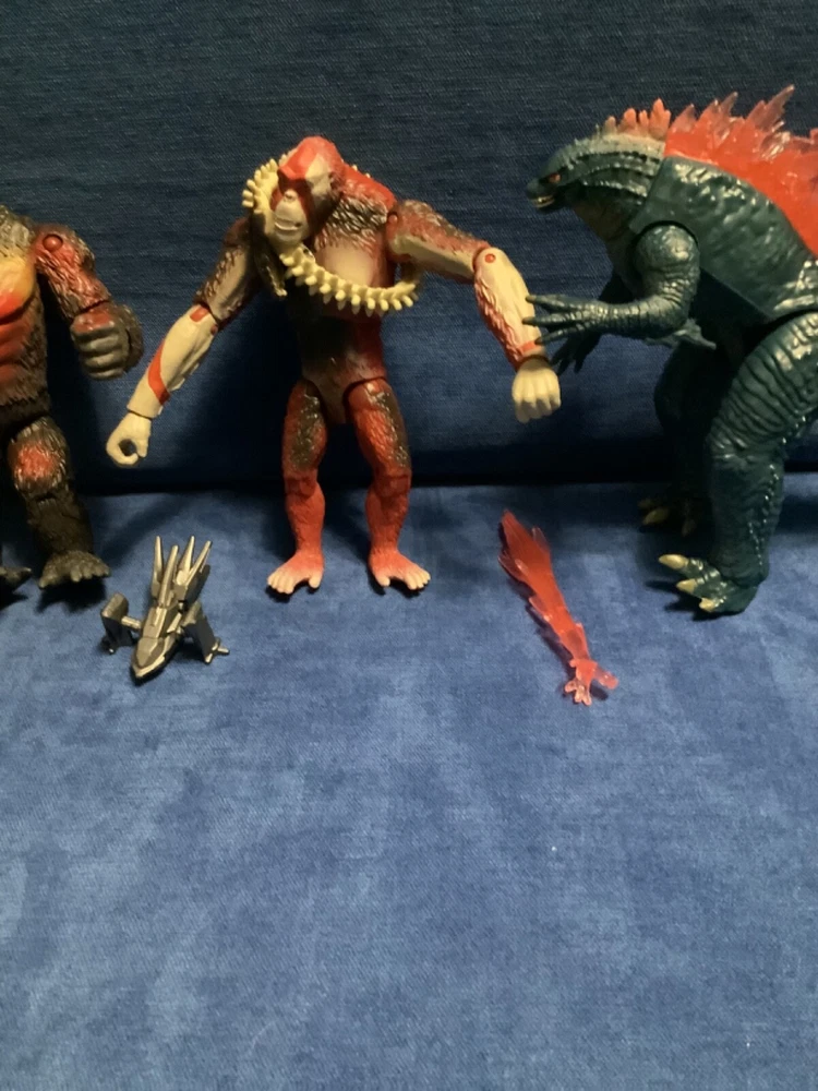 3 action figures from Godzilla versus Kong movie in new like condition all are approximately 6 inches tall