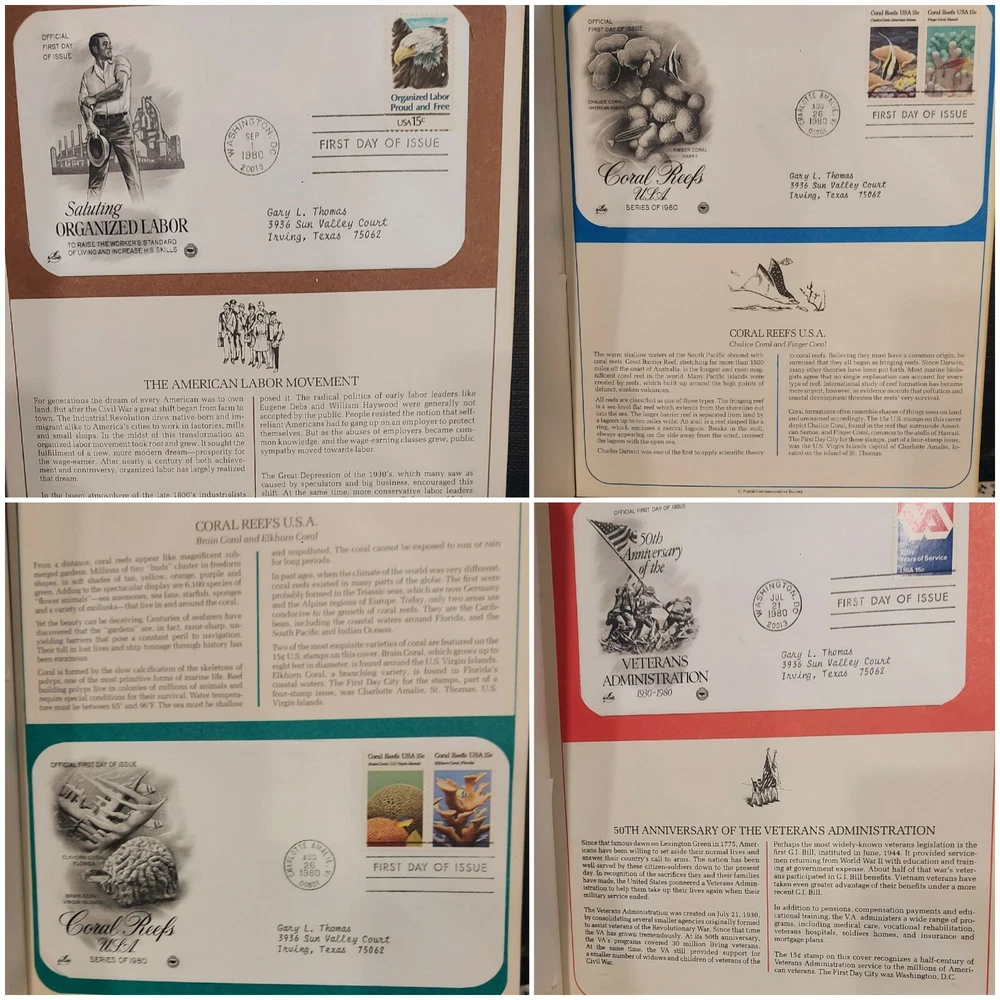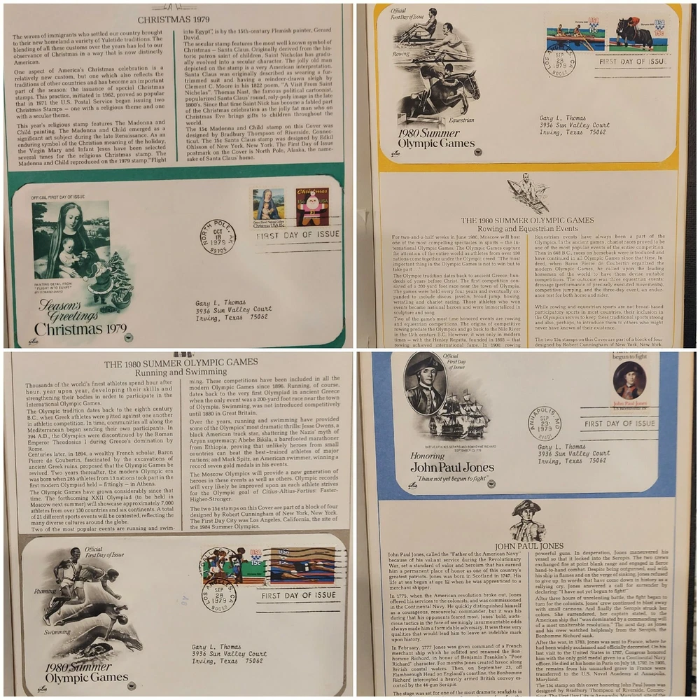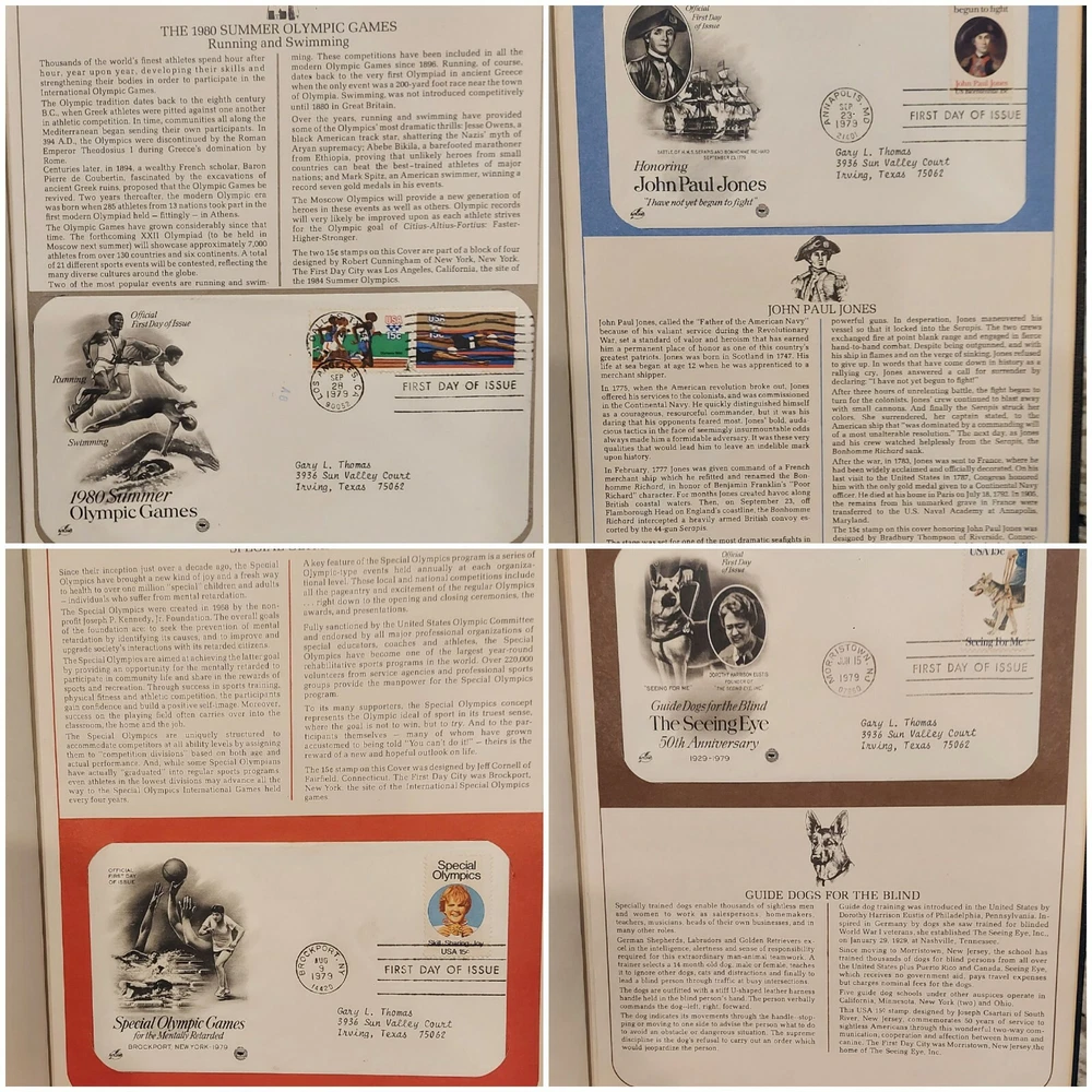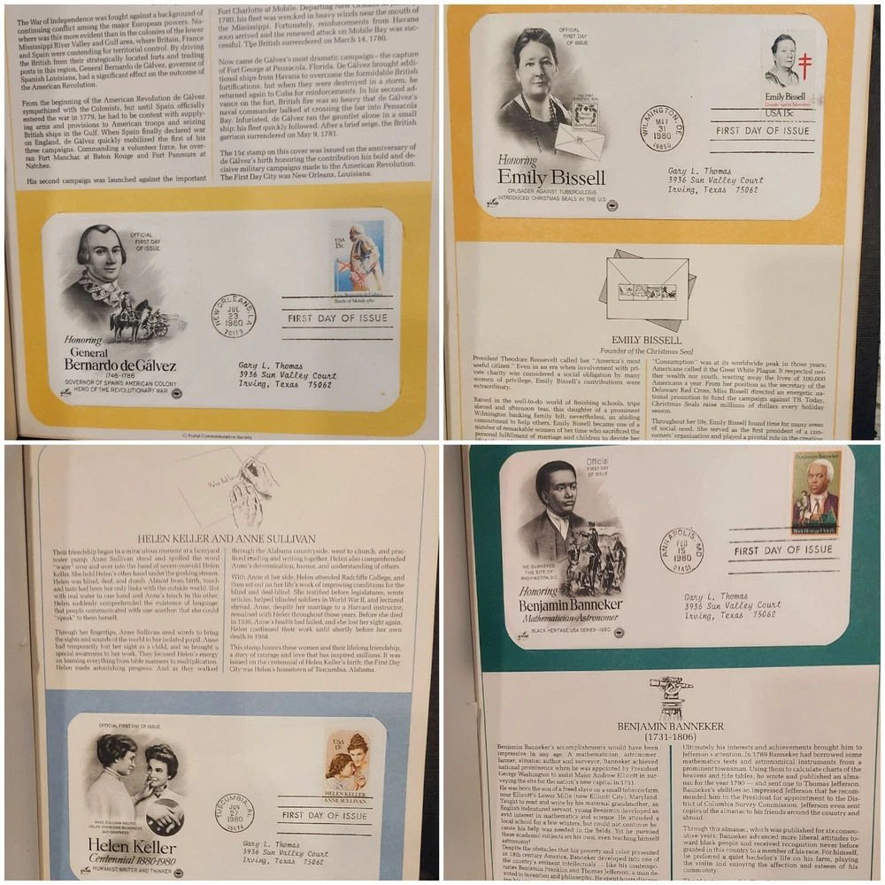 postal commemorative society Stamps two books leather bound with stamps......i had to make collage of photos to fit on lot.... both books great condition There is one paper loose that needs to be put in book ******** Red book 14 pages ******************* Helen keller Veterans admin Frances perkins Emily bissell 1980 winter olympics Ben banneker W.c. fields Will rogers American architecture Endangered flora Seeing for me Special olympics 1980 summer olympics John paul jones *************************************** Black book*********