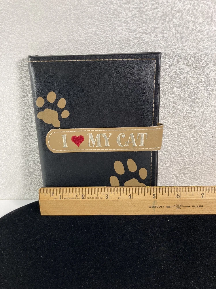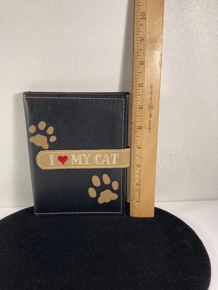 This small photo album is perfect for cat lovers who want to keep their 4x6 photos organized and protected. The album features an elegant black faux leather cover with embroidered writing and is acid-free to prevent damage to your precious memories. The book-bound format of the album makes it easy to slip in your photos, and it can hold up to a maximum 26 photo, ea. size of 4x6. Made by New View Gifts and Accessories LTD, this mini photo album is a great addition to your collection.