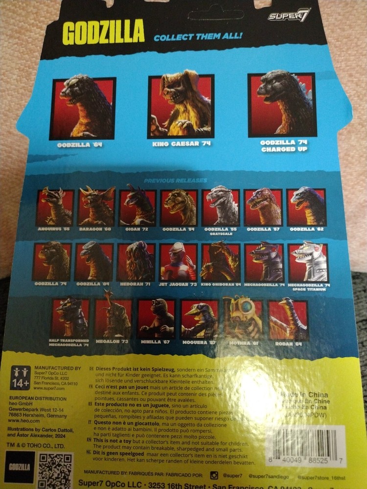 This Super 7 Godzilla '64 action figure is a must-have for any fan of the iconic monster. With its high-quality design and attention to detail, this figure is sure to impress. Made in China in 2024, this figure is perfect for collectors aged 12-16 years old. The figure features the beloved Godzilla in its classic pose, ready to take on any challenge. The brand, Super 7, is known for their high-quality collectibles and this Godzilla figure is no exception. Whether you're a fan of the monster or simply love collecting action figures, this Super 7 Godzilla '64 action figure is a great addition to any collection.