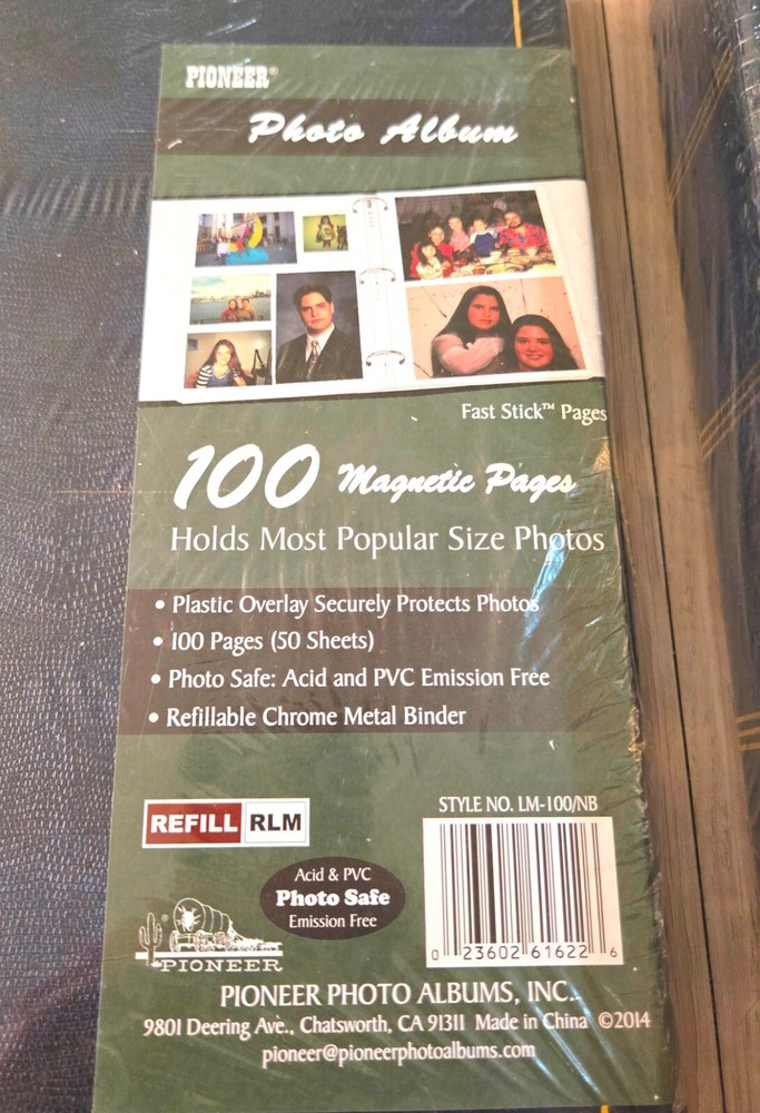 DESCRIPTION : Both photo albums are brand new and sealed. Each album includes 100 Magnetic Fast Stick Pages (50 sheets). Holds most popular size photos. Photo safe: acid and PVC emission free. Refillable chrome metal binder. Style No. LM-100/NB. Pictures are of the actual items you will receive. Shipping: WE COMBINE SHIPPING! We charge shipping on only one item in your order; the rest of your order ships FREE! Unlike most sellers, we use sturdy BOXES for all our CD’s, DVD’s, books, etc., to ensure they will arrive undamaged! Returns: Customer satisfaction is absolutely essential to us and we want you to be completely satisfied with your purchase. We offer a 30 day return policy, so if for any reason you are not satisfied with your purchase, please message us through eBay messages and we will work to take care of the issue. New items can only be returned if the item has not been opened or used. Buyer pays return shipping.
